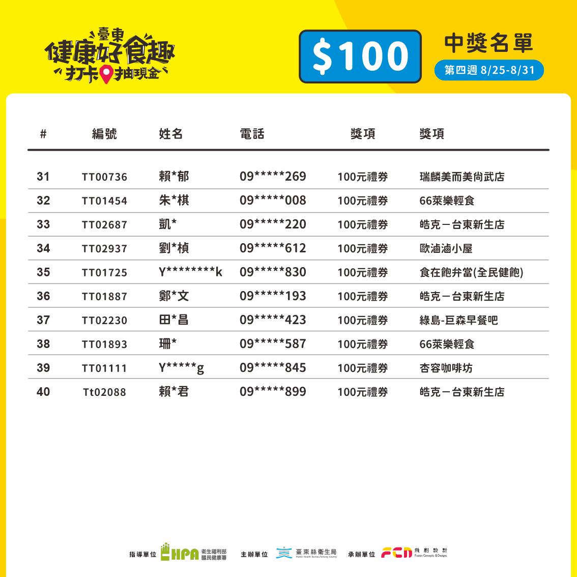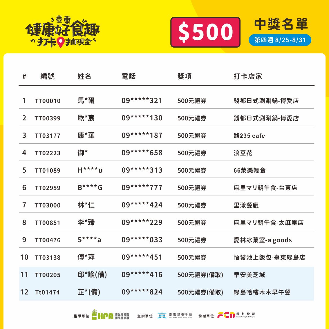 第四週抽獎(8/25–8/31)出爐囉,恭喜中獎的朋友們 !