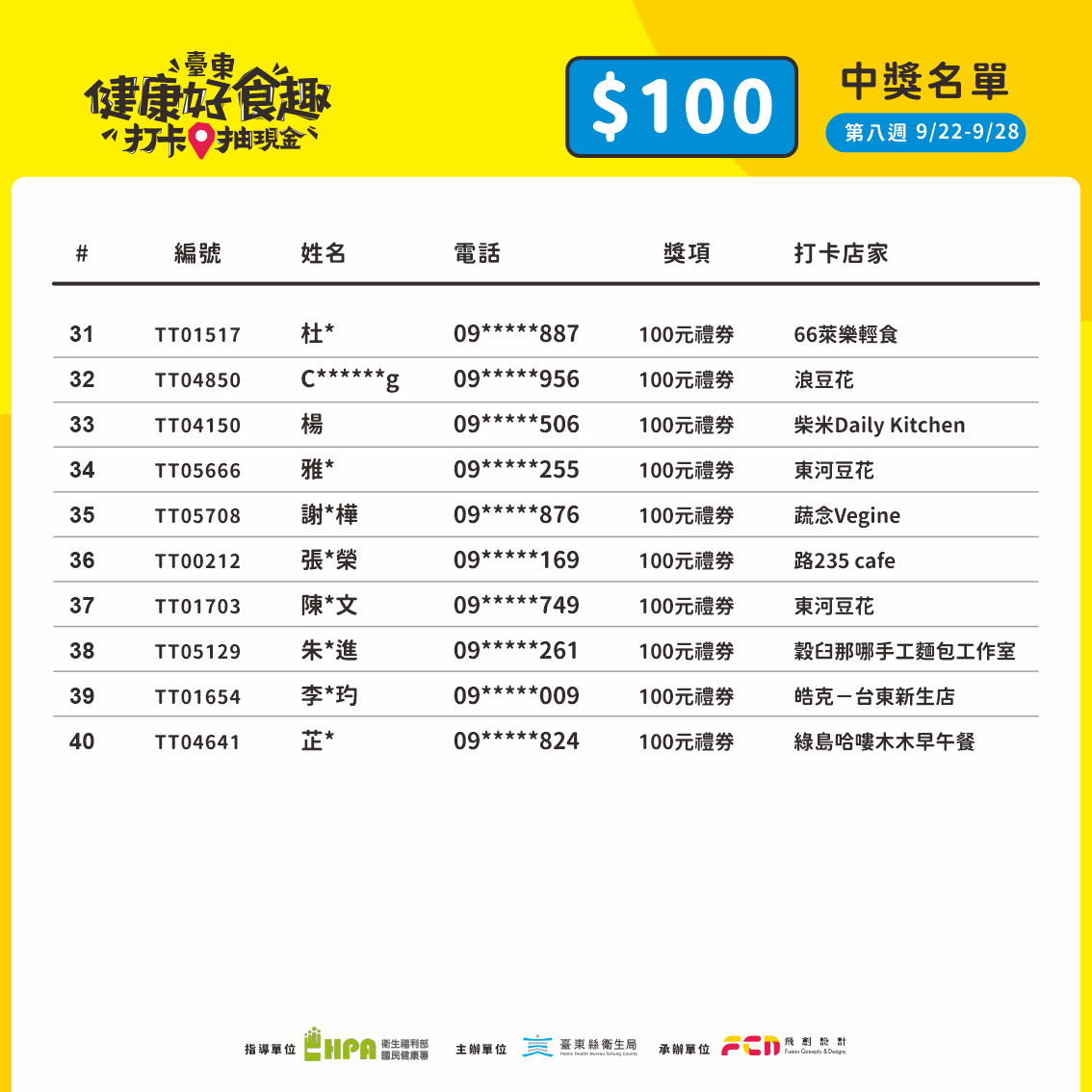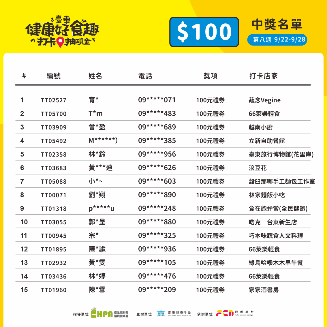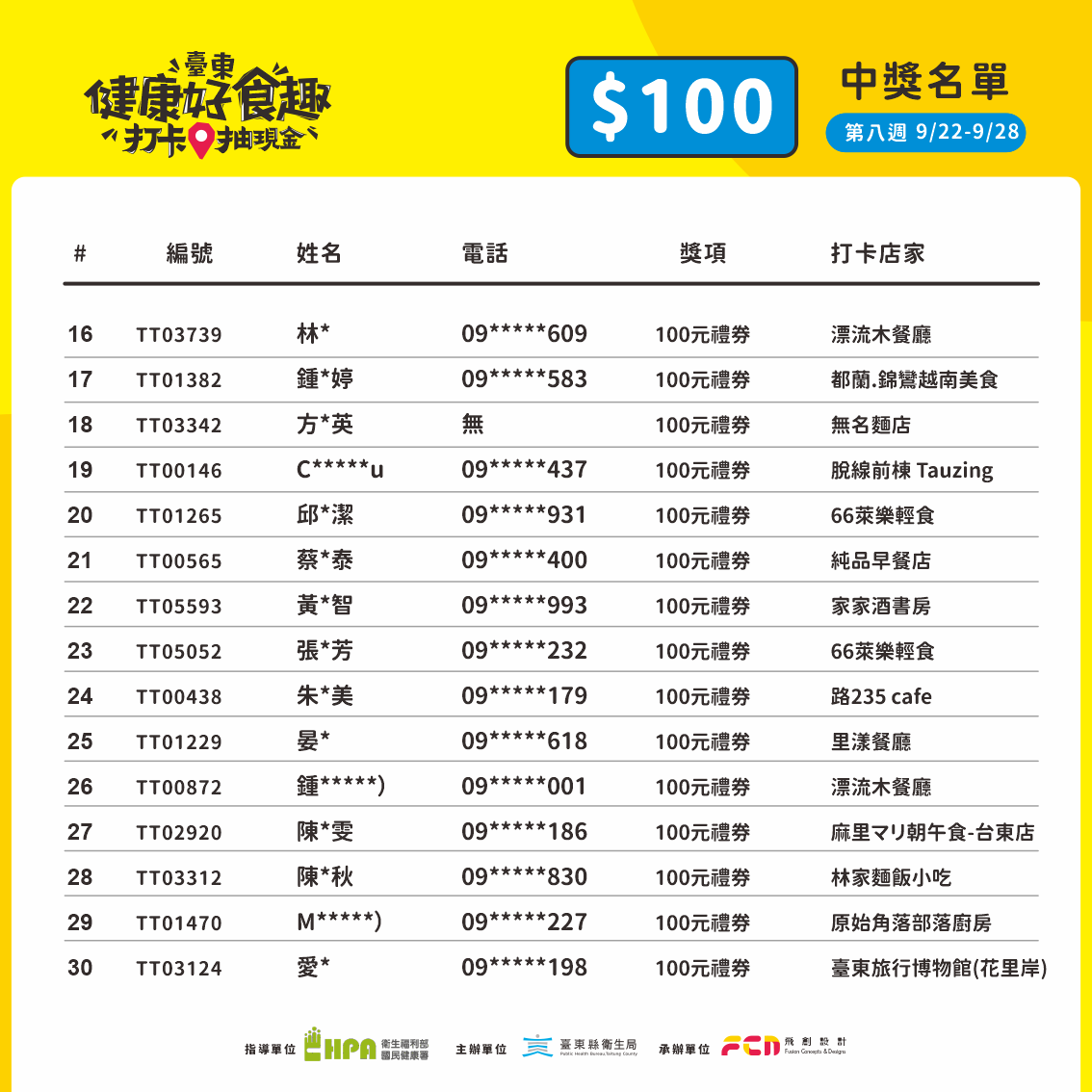 第七週抽獎(9/22–9/28)出爐囉,恭喜中獎的朋友們 !