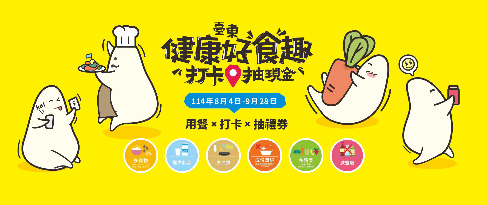 透過鼓勵民眾使用臺東縣健康地圖,前往健康友善餐飲店家消費並參與打卡,提升縣民健康飲食意識與參與度,推廣健康飲食觀念,建立友善健康的生活環境。